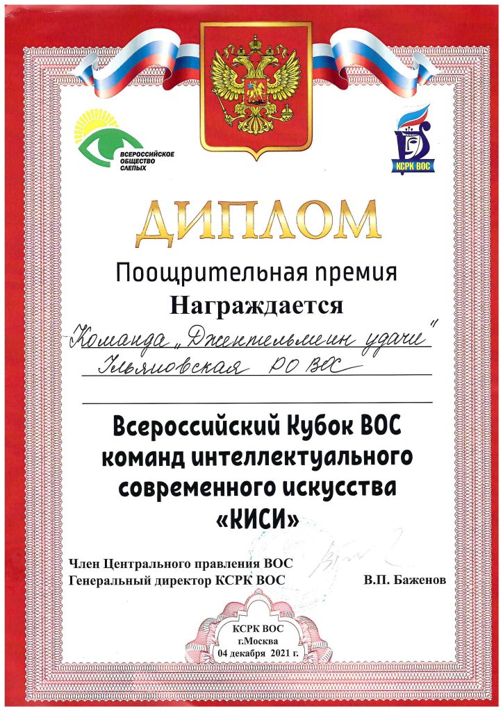 Награждена команда «Джентельмены удачи» во Всероссийском Кубке ВОС команд интеллектуального…