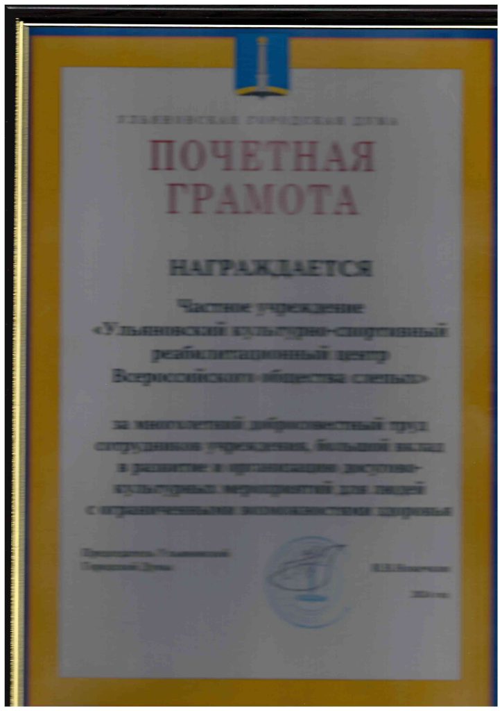 Награждён Ульяновский КСРЦ ВОС за большой вклад в развитие и…