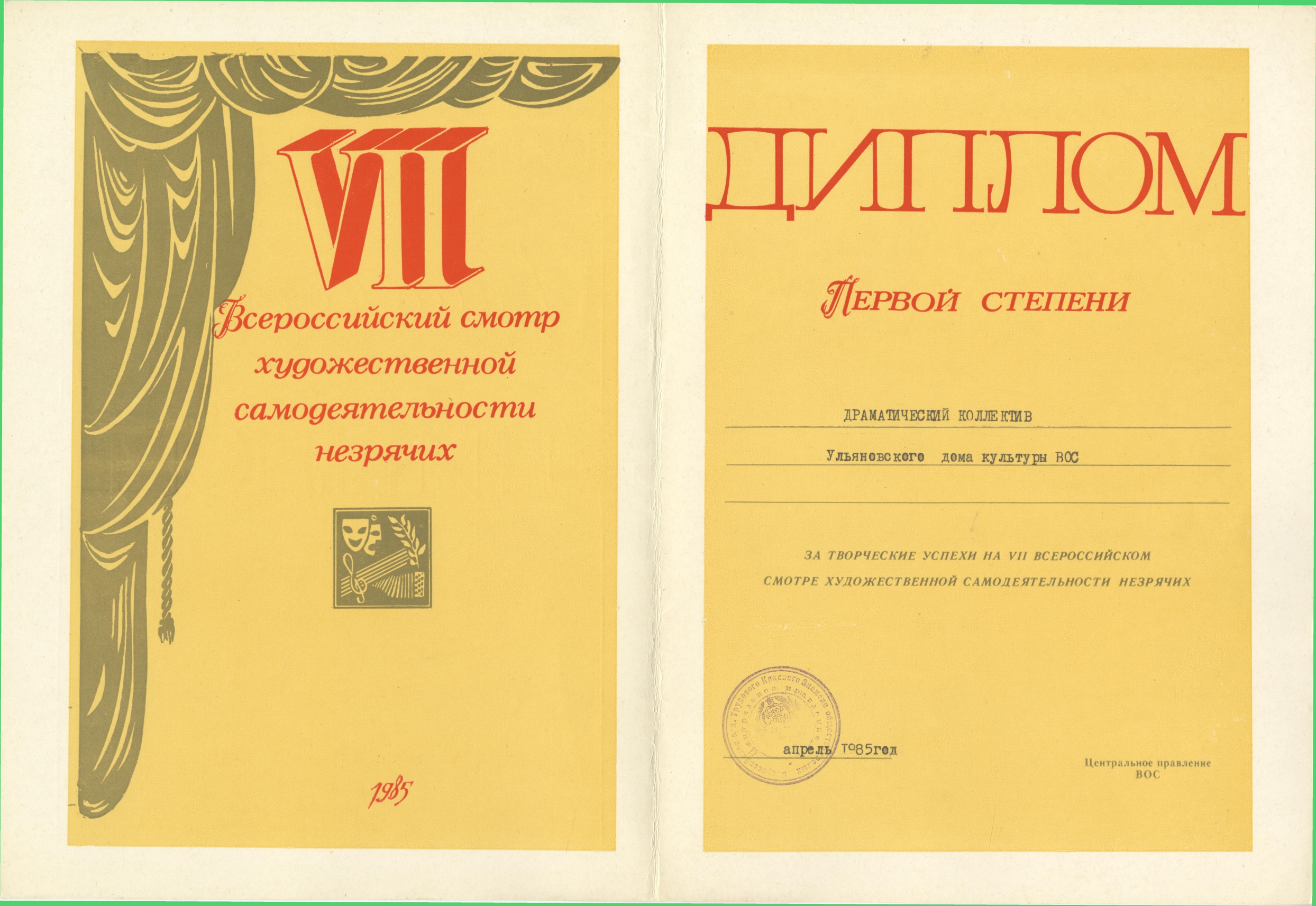 Драматический коллектив ДК награждён дипломом 1 степени за участие в Всероссийском смотре художественной самодеятельности незрячих
