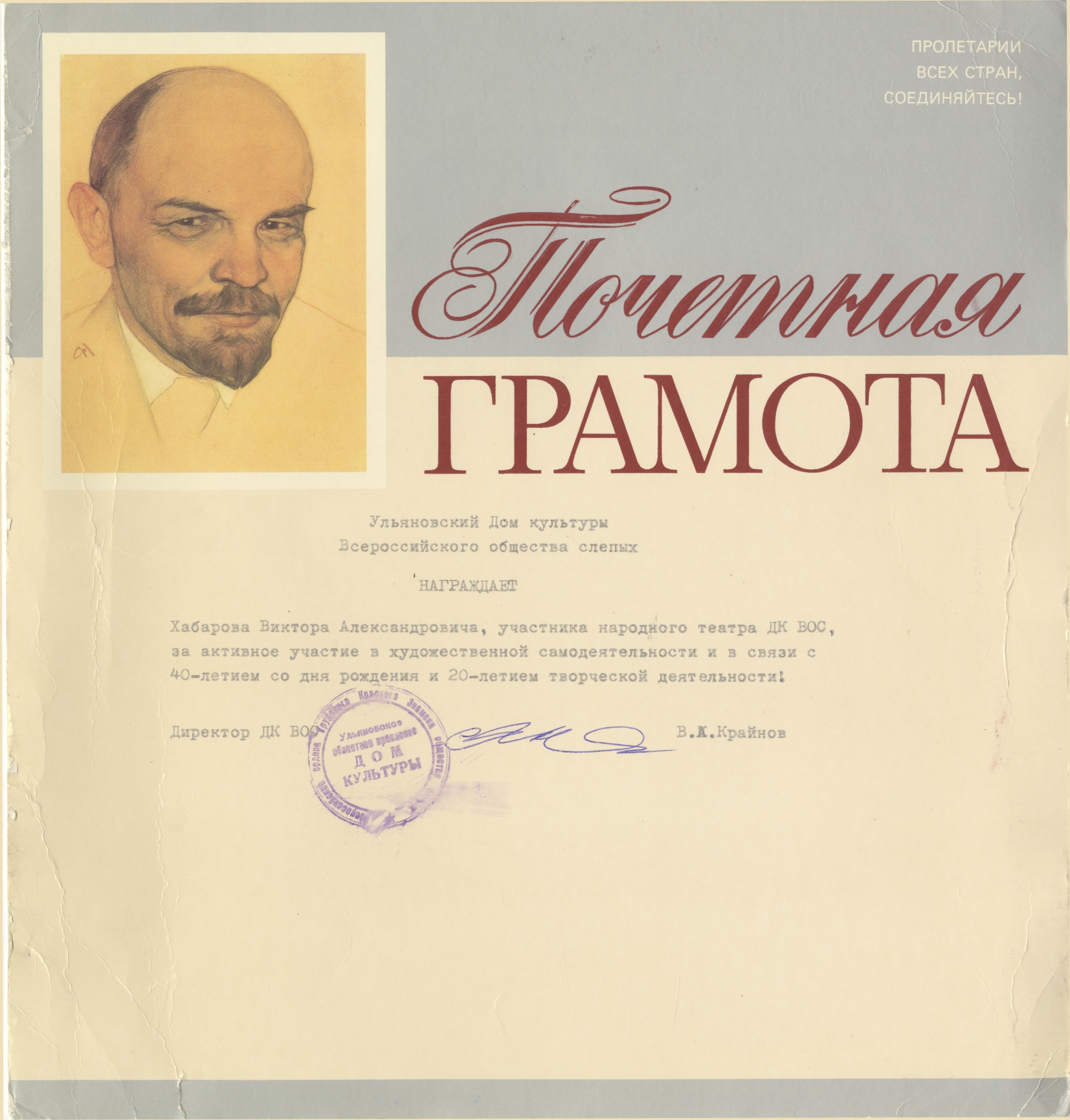 Награждён Хабаров Виктор Александрович в связи с 20 т-летием творческой деятельности