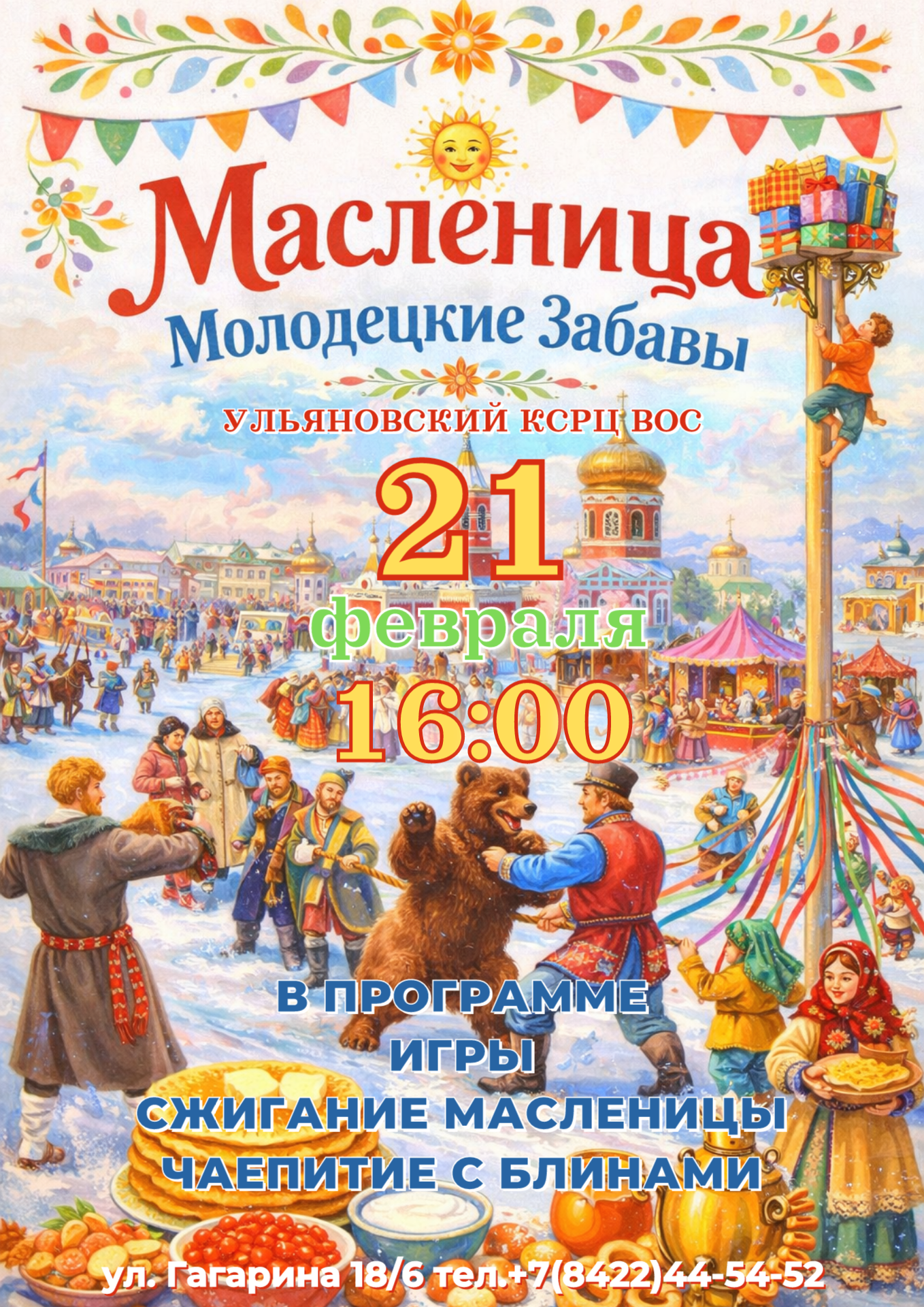 Приглашаем на масленичную игровую программу "Молодецкие забавы" 21 февраля в 16.00.