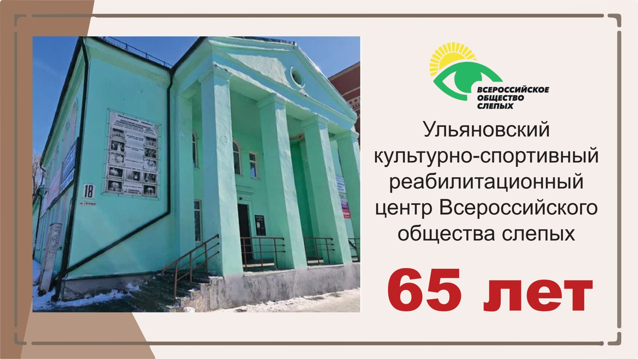 27 марта 2026 года в 11.00 (Мест) в Ульяновском культурно-спортивном реабилитационном центре ВОС (Ульяновский КРСЦ ВОС) (ул. Гагарина, д. 18) состоится Юбилейный вечер «Торжество времени и творчества», посвящённый 65-летию Ульяновского КСРЦ ВОС.